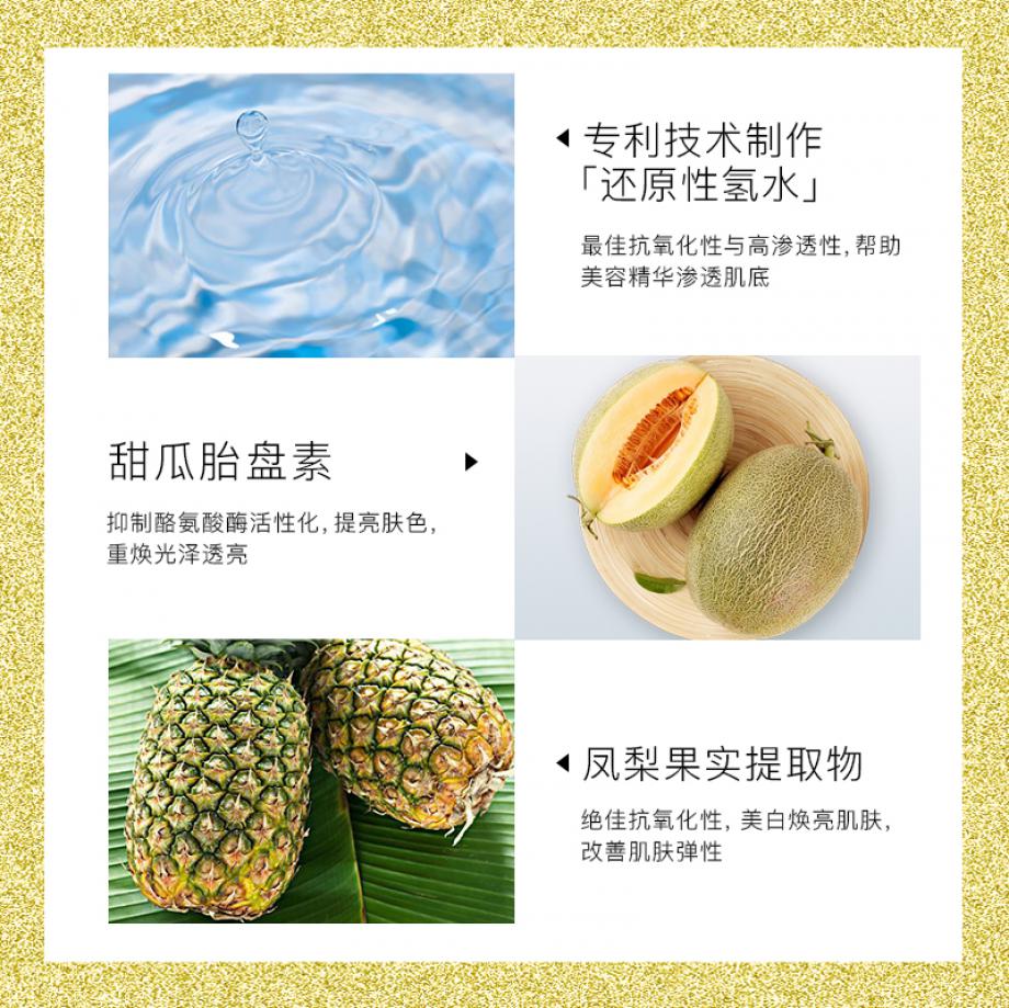 運用尖端技術(shù)——“氫原子鎖存技術(shù)”,將特高活性的 “氫原子”半永久性鎖入天然鹽中的超還原水溶性氫礦物質(zhì),具有高滲透性、高穩(wěn)定性及高抗氧化能力等優(yōu)點,能實現(xiàn)有效抗衰。